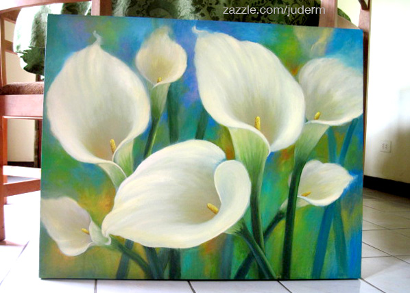 Pricio 340,000 colones ($600), Original painting white calla lilies, acrylic 125 cm x 85 cm (49 x 33.5 inches)
